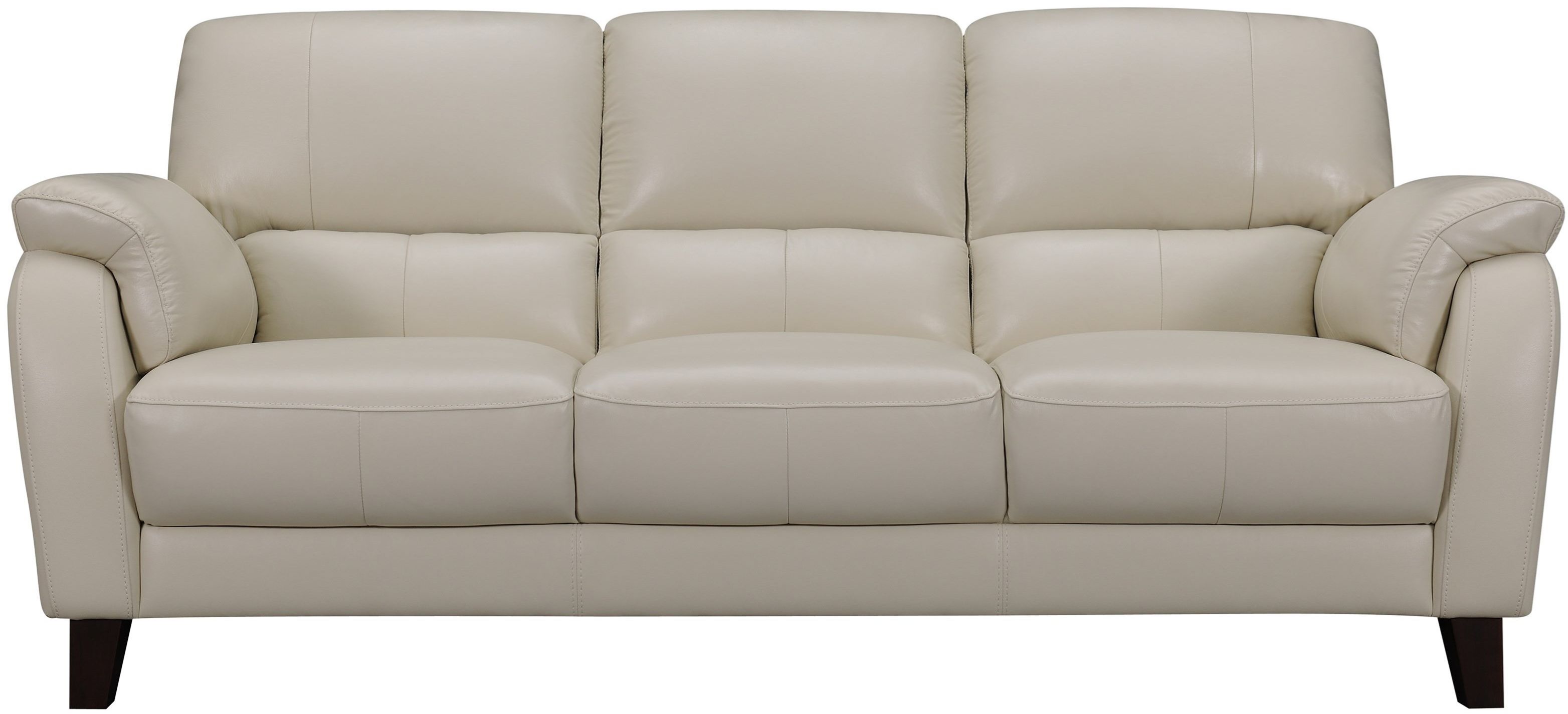 Leather sofa with pillow arms and attached back.Read More